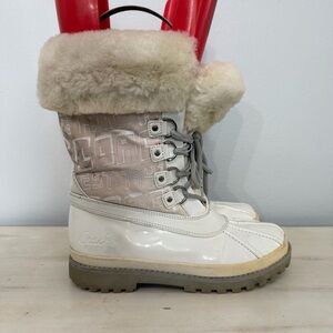 Coach White Patent Leather Leonora Winter Boots Size Size 7