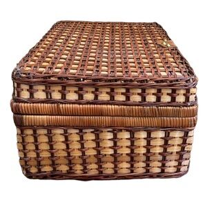 Large Woven Picnic Basket Romantic Vintage Set All Season Use Tan Blue Gingham