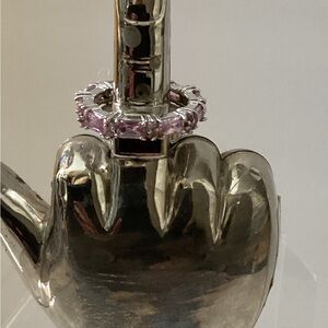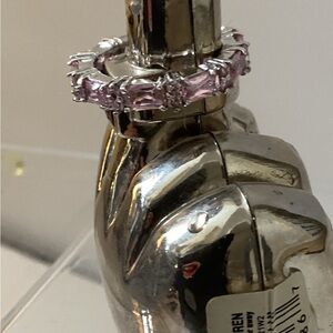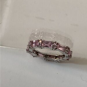 This elegant pink gemstone ring adds a touch of sophistication to any outfit. Perfect for special occasions or everyday wear.around a size 8