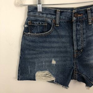 We the free for free people. Size 25. Sofia distressed high rise shorts in Byron bay. Button fly. Raw hem.