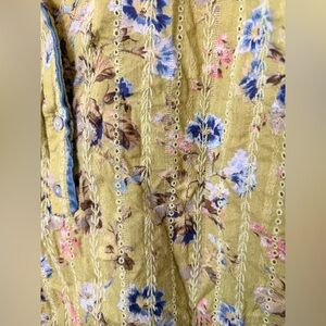 Sundance Green Eyelet Floral Partial Button Down Long Sleeve Top. Size XL.