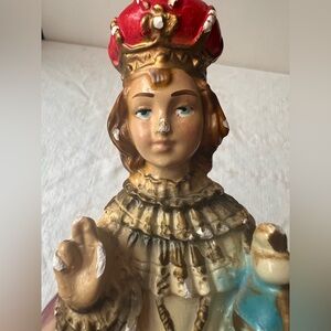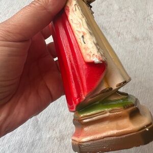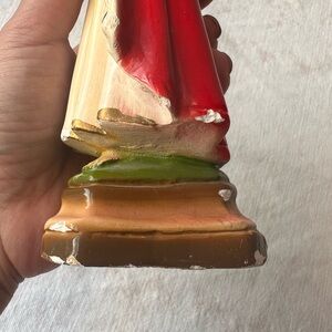 Beautiful vintage religious figurine featuring red and gold accents. Intricate details and vibrant colors make it a unique piece