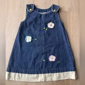 Vintage denim dress girls floral embroidered sundress Mayfair kids size 4t