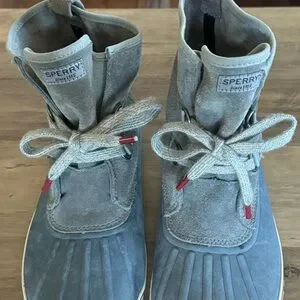 (Like New) Sperry Duck Boot Slouch Suede Booties, Grey Blue, Size 8 fits like 9