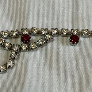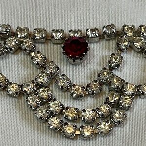 EUC Vintage Silver, Clear and Ruby Red Crystal Rhinestone Old Hollywood Tiered Choker Bib Necklace
