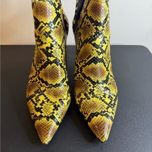 Bold yellow snake print heels. Perfect for a statement look. Size 8 and size 39 in European . 3 inch heels . Non smoking home