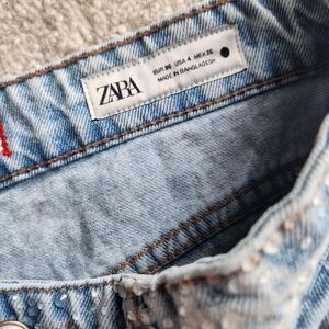 Zara Light Blue Denim Jeans With Clear Bead Embellishment