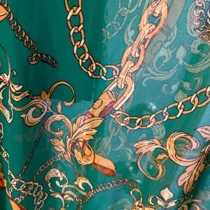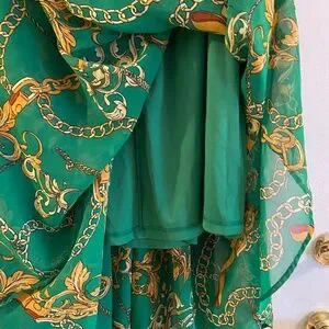 Green Baroque Scarf Print Sheer Maxi Skirt Gold Chain Regencycore Plus XL