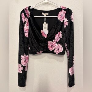 Wayf Black and Pink Floral Blouse