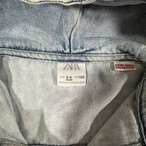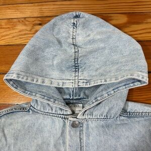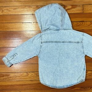 ZARA Light Washed Snap Denim Distressed Hooded Jacket SZ 3-4