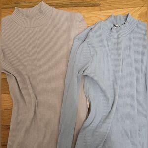 2 uniqlo long sleeves in good condition. very comfy and perfect for layering. one is a small and one is an extra small but they both can fit a small/medium.