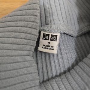 Lot of 2 UNIQLO Blue Gray Mock Neck Long Sleeve Cotton Shirts Tees Small XS