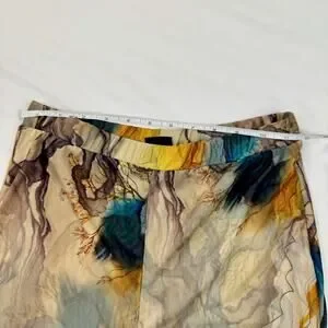 Blanc Abstract Mesh Flare Pants Large Earth Tone Sheer Print Y2K Art Girl Indie