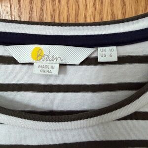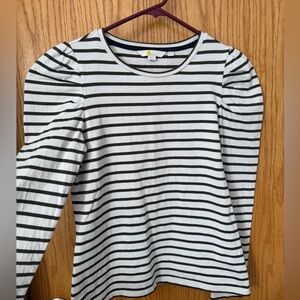 Boden Striped grayish green and White Women's puffed sleeve Top - size 4