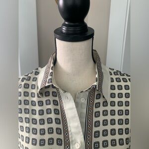 Stylish blouse with a modern pattern. Features a classic collar and button-down front. Perfect for versatile styling. NWT! Pit to pit measurement is 19.5 inches.