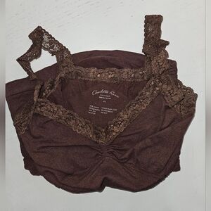 Charlotte Russe Brown Baby Tee Muscle Tank Top Y2K Vintage Lace V-Neck. Size M/L