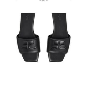 Courreges Logo Patch Leather Slide Sandals in Black 36