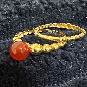 18K Real Gold and Red Beaded Double Ring