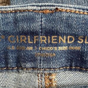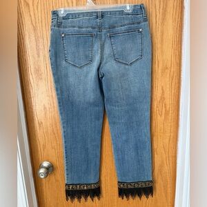 Chicos Women's girlfriend slim ankle jeans with Black beaded Fringe Hem - size 0