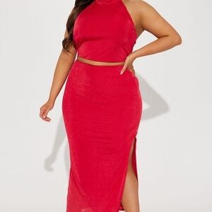 Fashion Nova Elegant Slinky Red Women's Skirt Set