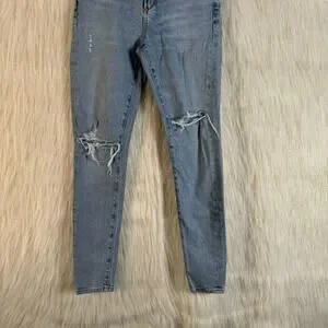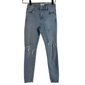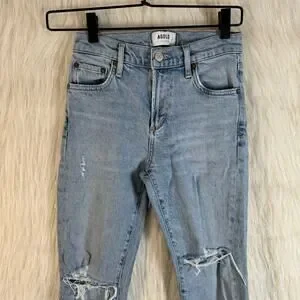AGOLDE Womens Mid Rise Skinny Ankle Distressed Sophie Cotton Blend Light Wash 23