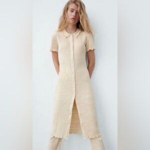 New Zara Elegant Cream Women's Longline Cardigan and Pants Set