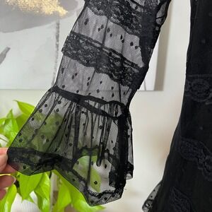 Romantic Goth Black Lace Ruffle Top Mesh Sheet Swiss Dot Bell Sleeve Womens Medium