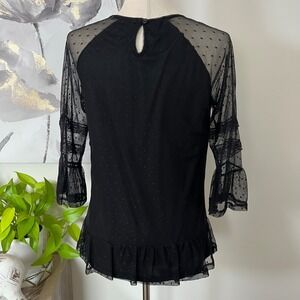 Romantic Goth Black Lace Ruffle Top Mesh Sheer Swiss Dot Bell Sleeve Medium