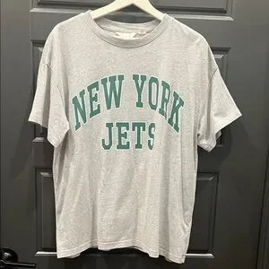 Casual gray t-shirt featuring New York Jets print in green by H&M. Cotton mix.