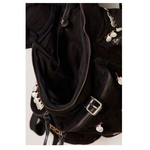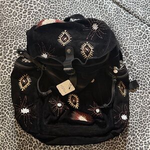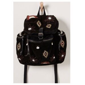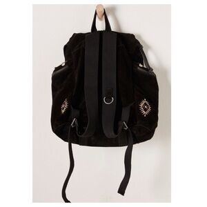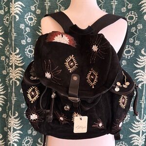 Free People Versailles Suede Black And Gold Embroidered Backpack NWT