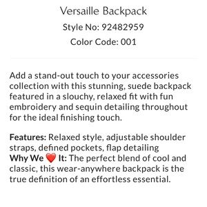 Add a stand-out touch to your accessories collection with this stunning, suede backpack featured in a slouchy, relaxed fit with fun embroidery and sequin detailing throughout for the ideal finishing touch.
