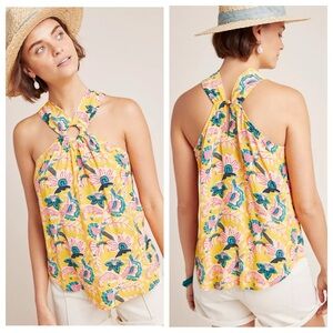 Anthropologie Maeve Mica floral botanical halter top gold 23444