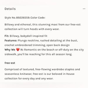 Free People Hadlee Maxi Dress. Size Large. Brand new, perfect condition. Plastic from tags still attached. This dress it a true beauty! Amazing details and a gorgeous flow. Perfect vacation or "guest at a destination wedding" dress. True to size.