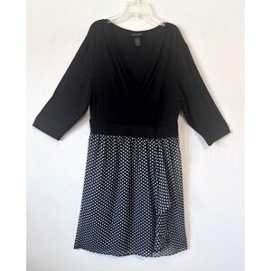 Lane Bryant Dress Size 16 Black White Polka Dot 3/4 Sleeve Career