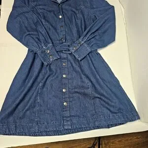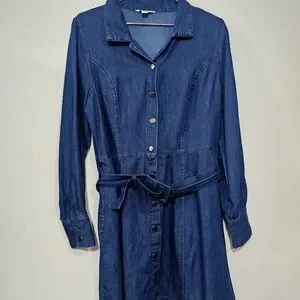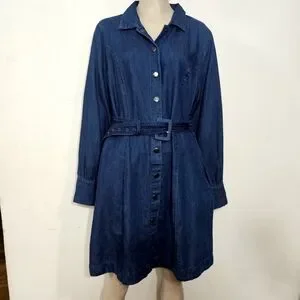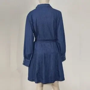 Elevate your wardrobe with this classic long sleeve denim dress. Featuring a button-up front and a stylish belted waist, it's perfect for any casual occasion.