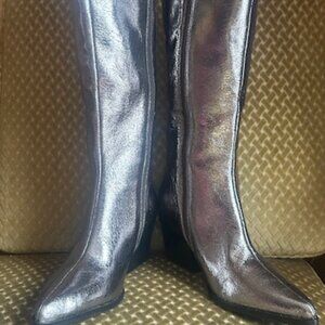 Seychelles Begging You Tall Metallic Silver Leather Knee High Boots