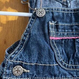 Adorable vintage genuine OshKosh B’gosh girl’s blue denim pink snowflake embroidered overall dress. Exclusive edition. Size 12 months. Very good used condition.