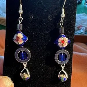 Hand Crafted Blue Cloisonné and Hematite Artistic Earrings