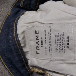 Sleek jeans by Frame Denim. Only tried on. Classic blue hue. Manufacturer whiskering as pixtured.