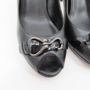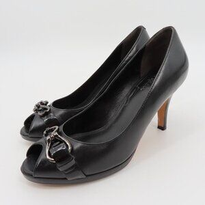 Cole Haan 7.5 Black Leather Peep Toe Metallic Hook High Heel Pumps NikeAir