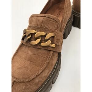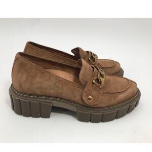 Stylish brown sneakers with a chunky sole. Features a textured design and decorative buckle.