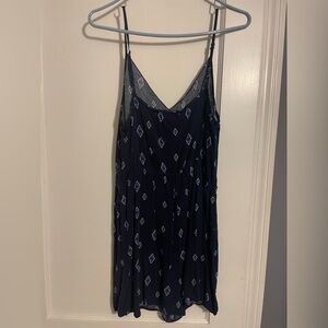 Stylish and comfortable navy blue romper with a chic pattern. Triangular opening, adjustable straps and very comfortable. GUC. Size XL. Perfect for any occasion!
