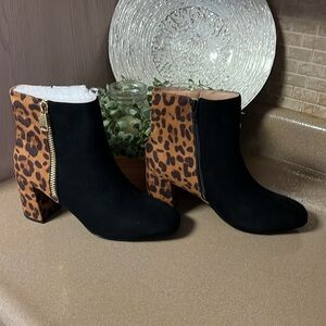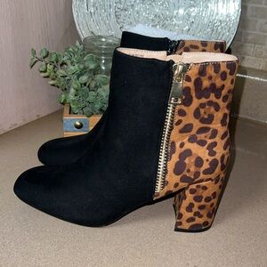 Journee Sarah Collection Black Animal Print Two Tone Ankle Boots NWOT