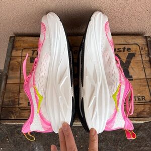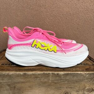 1/26-S4668 Hoka Skyflow Women’s Running Shoe. Color way:Neon Rose/Neon Hoka Citrus. Preowned/Like New Condition. Women’s Size 11 B.