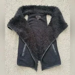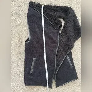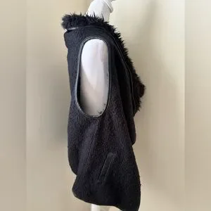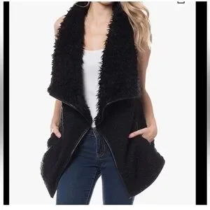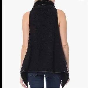 Medium Love Tree Black Teddy Sherpa Open Front Faux Fur Vest