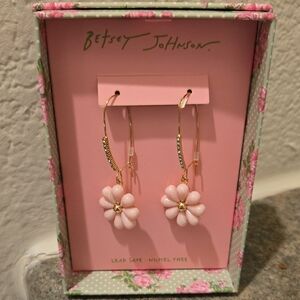 Charming pink floral earrings by Betsey Johnson. Features delicate flower design with gold accents.