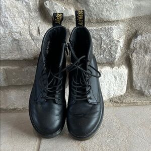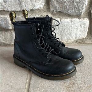 Dr. Martens Black Leather Boots with Yellow Stitching
