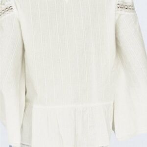 Elegant top with intricate lace & eyelet design. Key hole button closure on back of neck. Flowy bell sleeve. Gently used, in excellent condition.