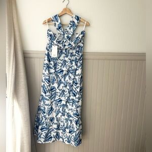 ⭐️ NEW Grace Karin Small Criss Cross Halterneck Blue White Flowy Maxi Dress