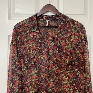 Free People Easy Rider Floral Sheer Button Down Long Sleeve Blouse - Size S